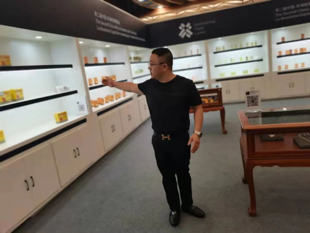 所以最后,国庆节当天,于总拖着大行李箱亲自来常设展馆布展,试图将南非优质的钻石、红酒、博士茶这些特色商品,更好地展现给湖南的贸易商。