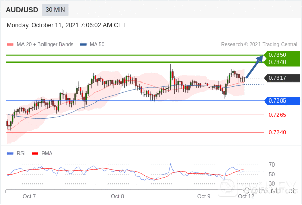 在0.7285之上,看涨,目标价位为0.7340,然后为0.7350。