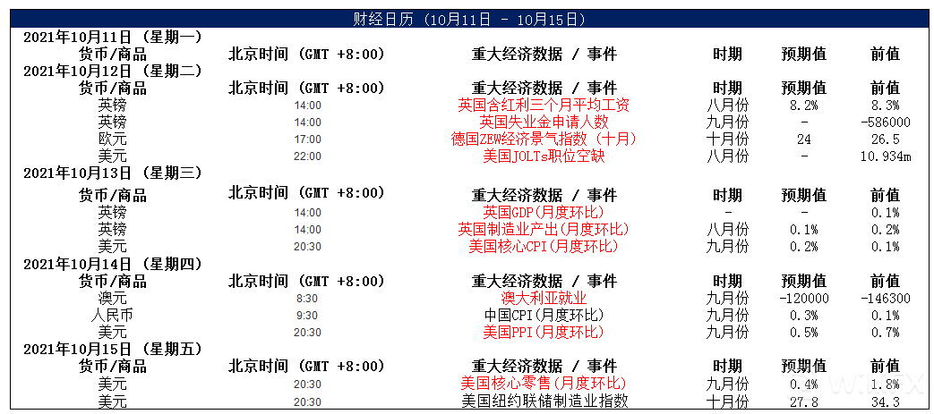 美元方面,周二,美元指数涨0.17%,主要是因市场预期美联储将于下月宣布缩减大规模债券购买步伐,同时对能源价格飙升的担忧也促使投资者转向避险美元。今晚20:30,将公布美国9月未季调CPI年率,此前公布的8月CPI涨幅出现回落,一定程度上支撑了美联储的“暂时”通胀观点。次日2:00,美联储FOMC公布货币政策会议纪要。整体来看,美元中长线为偏强结构,短线为震荡偏强结构。