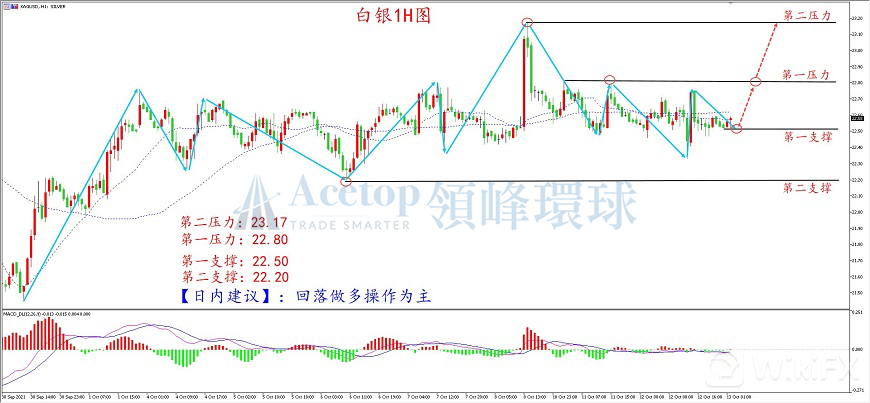 今日市场消息面相对较多,美盘时段将公布美国9月CPI数据,作为关键的通胀数据,在缩债确定的基础上,更多的将会在通胀层面对金价产生较大的影响;此外,隔夜的G20财长及央行行长将召开新闻发布会,美联储还将公布货币政策会议纪要。投资者需密切关注来自消息面对黄金价格的影响。