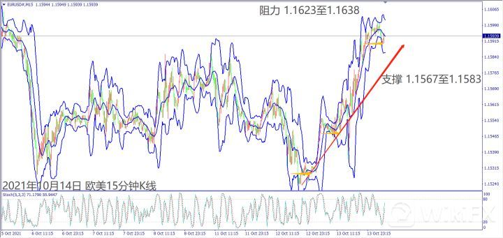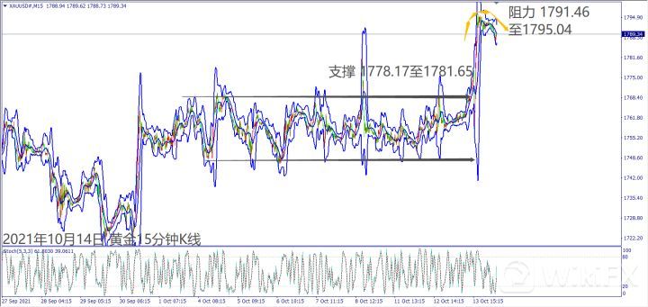 昨日(13日)欧元区公布经济数据好坏参半,欧洲股指开盘后德指出现领涨,带动道琼斯和纳指皆涨逾150点。晚间传出美国总统拜登经济议程将缩水造成道琼斯一度急跌350点。美联储预期11月启动缩减购债,带动道琼斯和纳指重回涨势。欧佩克月度石油报告调降今年原油需求和价格,造成美油下跌逾1%。晚间美国股指出现大涨,带动美油急涨近2%。美国EIA月度石油报告调降2022年油价,美油回落至80美元附近整理。