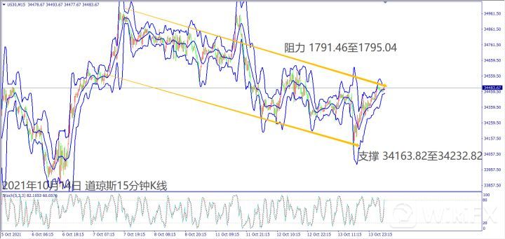 美联储宣布缩减购债执行宽松政策,带动道琼斯和纳指出现反弹。预计美国总统拜登宣布缩减基建法案内容,道琼斯冲不过30日均线34,592,建议偏空操作。短线反弹若冲不过前高阻力14,900关口,建议可偏空操作。