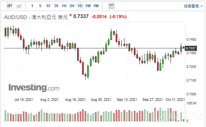 亚市盘中澳元兑美元震荡下行,截止目前澳元兑美元在0.7340一线徘徊。1小时级空头,日内看多。操作上,上方阻力关注0.7380,下方短线支撑关注0.7290水平。(仅供参考)