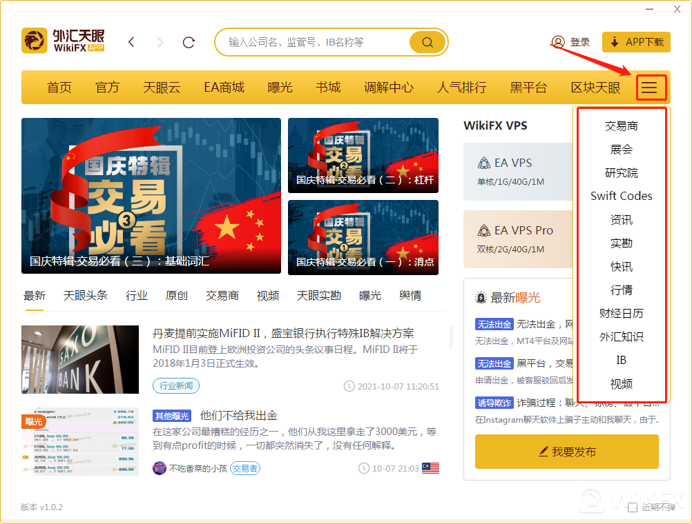 首先在外汇天眼PC端的首页上,关于外汇的文章板块就占据了整个页面的三分之一,交易者们可以关注天眼的原创文章、天眼头条以及行业信息,这些文章深浅类型不同,可以满足所有类型的外汇交易者们学习。