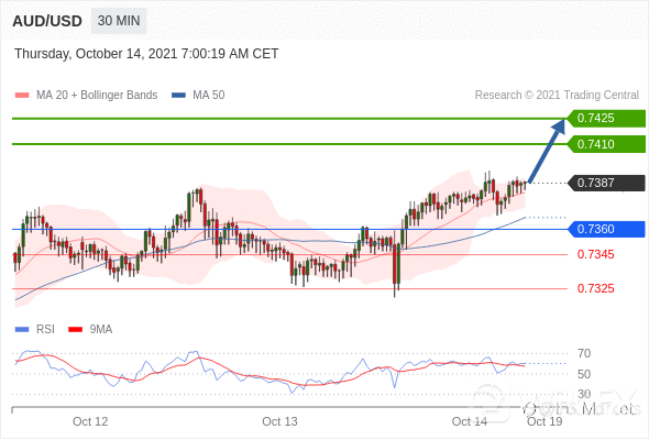 在0.7360之上,看涨,目标价位为0.7410,然后为0.7425。