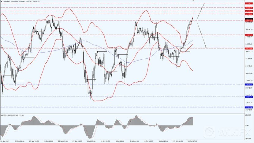 道指今日关注 34990 一线,在 34990 一线上方,则依次关注 35110 和 35226 两个位置的压制力度。
