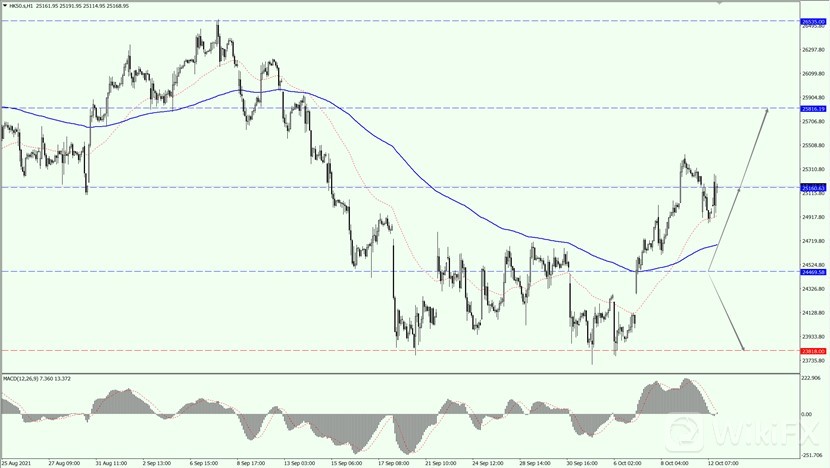 如果 HK50 力度跌破 24469 一线,届时则将关注 23818 一线的支撑力度。