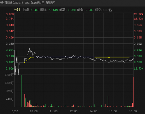 上市首日,谭仔国际表现不佳,上市低开9.91%,开盘价报3港元。随后跌势有些许放缓,但截至当日收盘,谭仔国际股价仍较发行价下跌7.51%,报3.08港元。