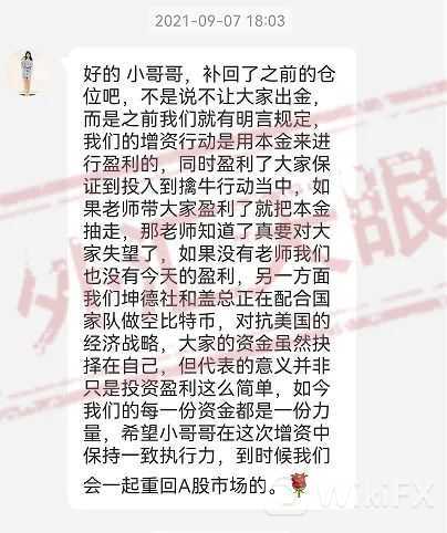 自从苑先生加入了比特币复兴行动后,除了有专业的投资老师,平日里的操作交流都由这位助理进行指导监督,期间一直鼓励大家补仓,并且一直不让学员们进行出金,而且说的理由冠冕堂皇:配合国家队做空比特币,对抗美国的经济战略。这样的理由实在是有“水准”,顿时让那些想出金的学员断了念想。