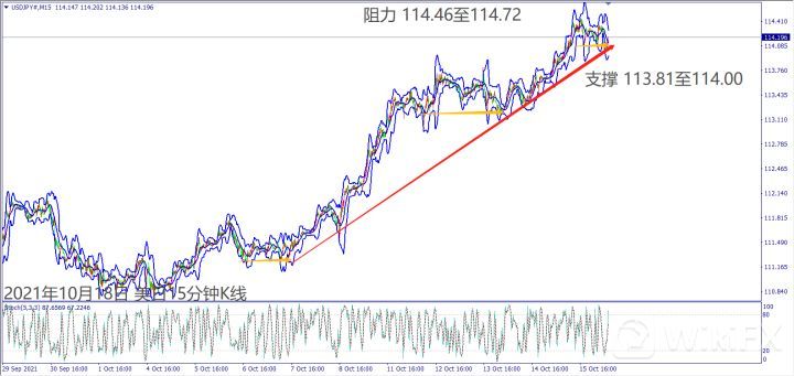 日级别线图,连续上涨突破120日均线,240日均线若突破,有望启动多方涨势;15分钟K线,短线形成盘涨,守住上升趋势线,有机会挑战前高阻力。