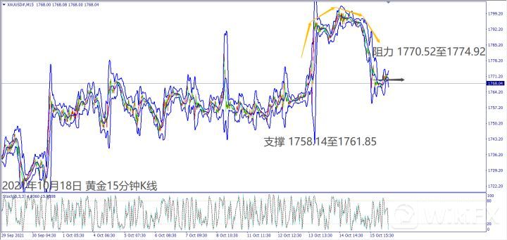 上周五(15日)美国股指和美债收益率一路攀升,造成黄金从早上高点下跌约30美元。晚间美国公布经济数据大都不佳,美元指数下跌一度推升黄金冲高至1776美元。随后承压回落至1770关口下方整理。