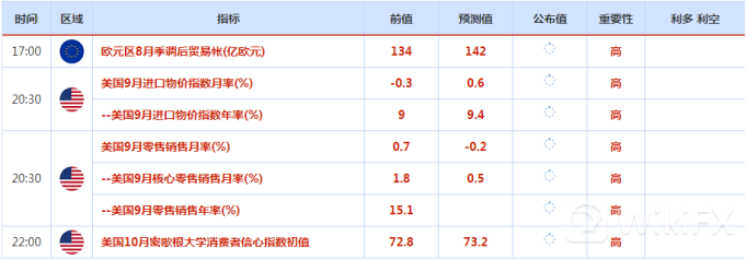 ③ 周三(10月20日)英国9月CPI及PPI数据、欧元区及加拿大CPI数据,2021年FOMC票委、亚特兰大联储主席博斯蒂克发表讲话,美联储理事沃勒就经济前景发表讲话。