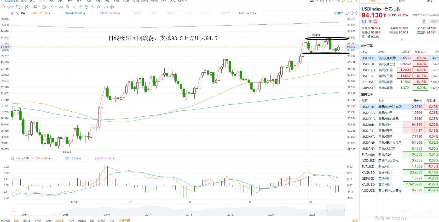 美元指数上周冲高回落,短期维持在区间之内震荡,重要原因是美债收益率已经回归中枢,本轮得上涨是美债收益率得传导,若无法继续保持上行,则美元指数维持区间震荡,值得注意的是进一步关注缩债落地,且零售数据意外增加,推动了复苏预期,支撑美元走强,目前技术层面区间震荡为主,上方94.5压力,下方93.5支撑,若突破94.5则有望测试周线级别压力95附近,在基本面没有大得变化之前,很难给出大得向上空间,按照震荡对待