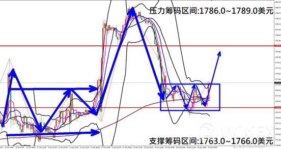 今日黄金(10月19日)早盘在1764.1美元/盎司附近,从技术分析面切入1小时级别观察走势架构符合昨日(18日)预测K棒出现反弹上涨行情,目前K棒落在布林通道中轨与上轨之间,同时开口转折朝上,因此有机会持续反弹上涨行情。