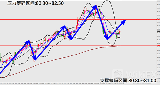 目前短线上方压力区间位于82.30~82.50,下方初步支撑区间于80.80~81.00,操作心态偏短多为主,想进场做短多的投资者可考虑在81.40至81.60区间轻仓买进,止损点位可考虑设置81.00下方。