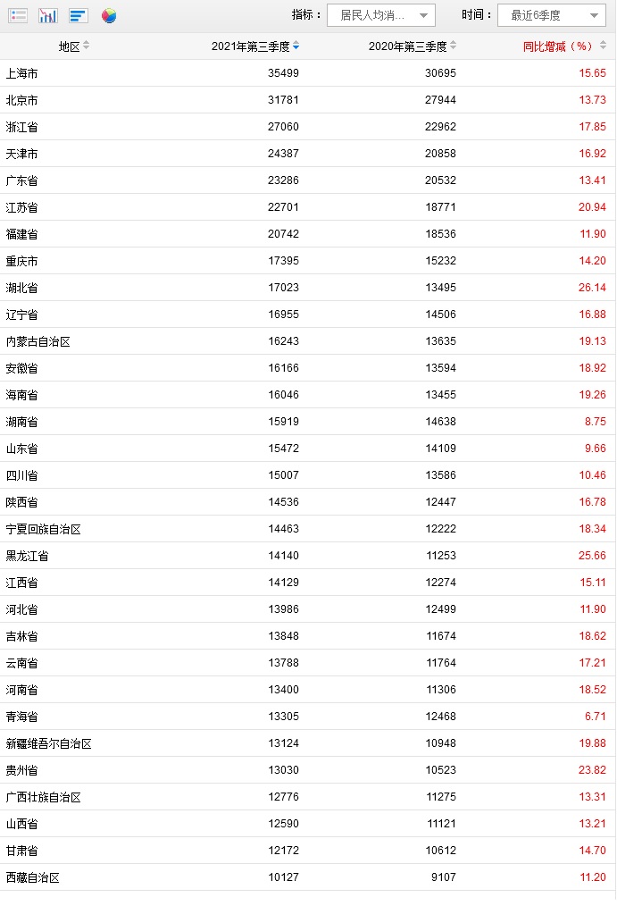 原标题:31省份前三季消费榜:京沪人均超3万,16省份增速跑赢全国