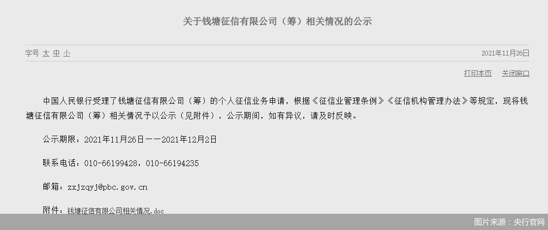 继百行征信、朴道征信后,第三家个人征信牌照呼之欲出。根据公示,钱塘征信注册地为浙江省杭州市,注册资本为10亿元,业务范围为个人征信业务。