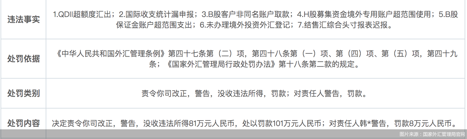 中信证券股份有限公司(以下简称“中信证券(600030,股吧)”)则存在7项违法行为,具体违法事实包括QDII超额度汇出、国际收支统计漏申报、B股客户非同名账户取款、H股募集资金境外专用账户超范围使用、B股保证金账户超范围支出、未办理境外投资外汇登记以及结售汇综合头寸报表迟报。