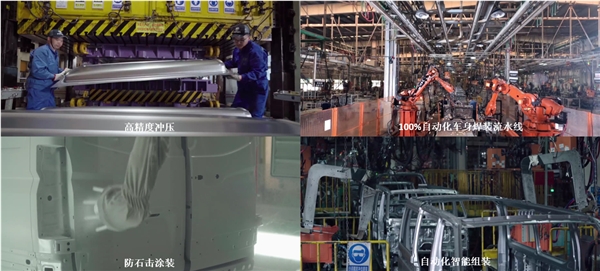 工厂拥有冲压、焊接、涂装、总装四大工艺,配置国际先进的KUKA、ABB、发那科智能机器人和先进的检测设备;搭建MES、CMMP、QMS等信息系统,实现自动化控制及智能化管理。