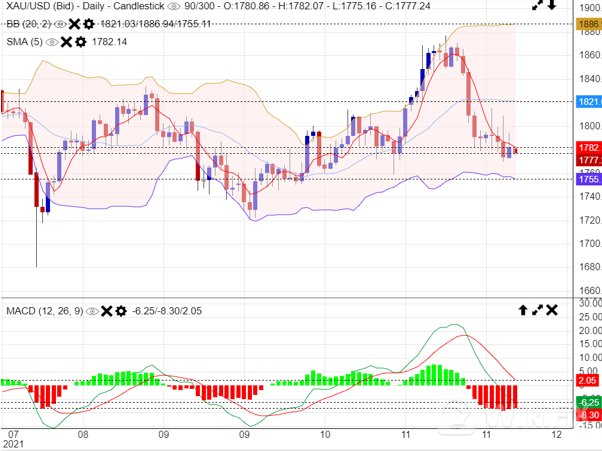 技術面上,金價近兩個月以來的上升趨勢已停止,目前關注疫情帶來的避險支持及美聯儲加快緊縮的壓力,兩方面拉鋸的結果將决定後市走向。而近日金價多次上破1800美元的關口但都未能企穩,已在美聯儲轉鷹後,金價中長綫走勢幷不樂觀,WCG Markets認爲投資者目前應以逢高做多爲主要策略,投資者可于1782美元建立淡倉幷于1771美元獲利,止損可放在1788美元。