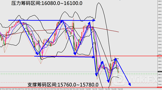 目前短线上方压力区间位于16080.0~16100.0,下方初步支撑区间于15760.0~15780.0,操作心态偏短空为主,想进场做短空的投资者可考虑在15920.0至15950.0区间轻仓进场,止损点位可考虑设置15990.0上方。