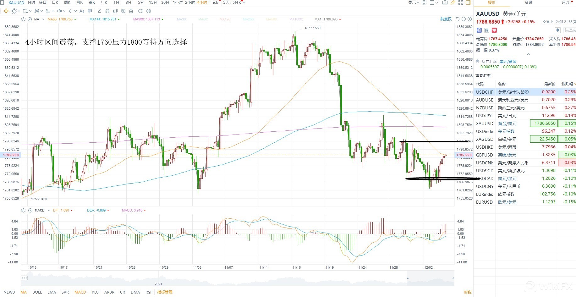 黄金短期因非农数据不及预期而出现反弹,当然从技术层面上来看,这里只是超跌反弹,基本面上美元维持震荡,且美债收益率继续高位震荡,对于美联储的鹰派基调市场依然存在担忧情绪,所以金价大幅反弹的概率并不高,目前进入超跌区间之后1760成为多空分水岭,短期不破,则有望继续反弹,上方箱体压力1800,等待方向选择为主