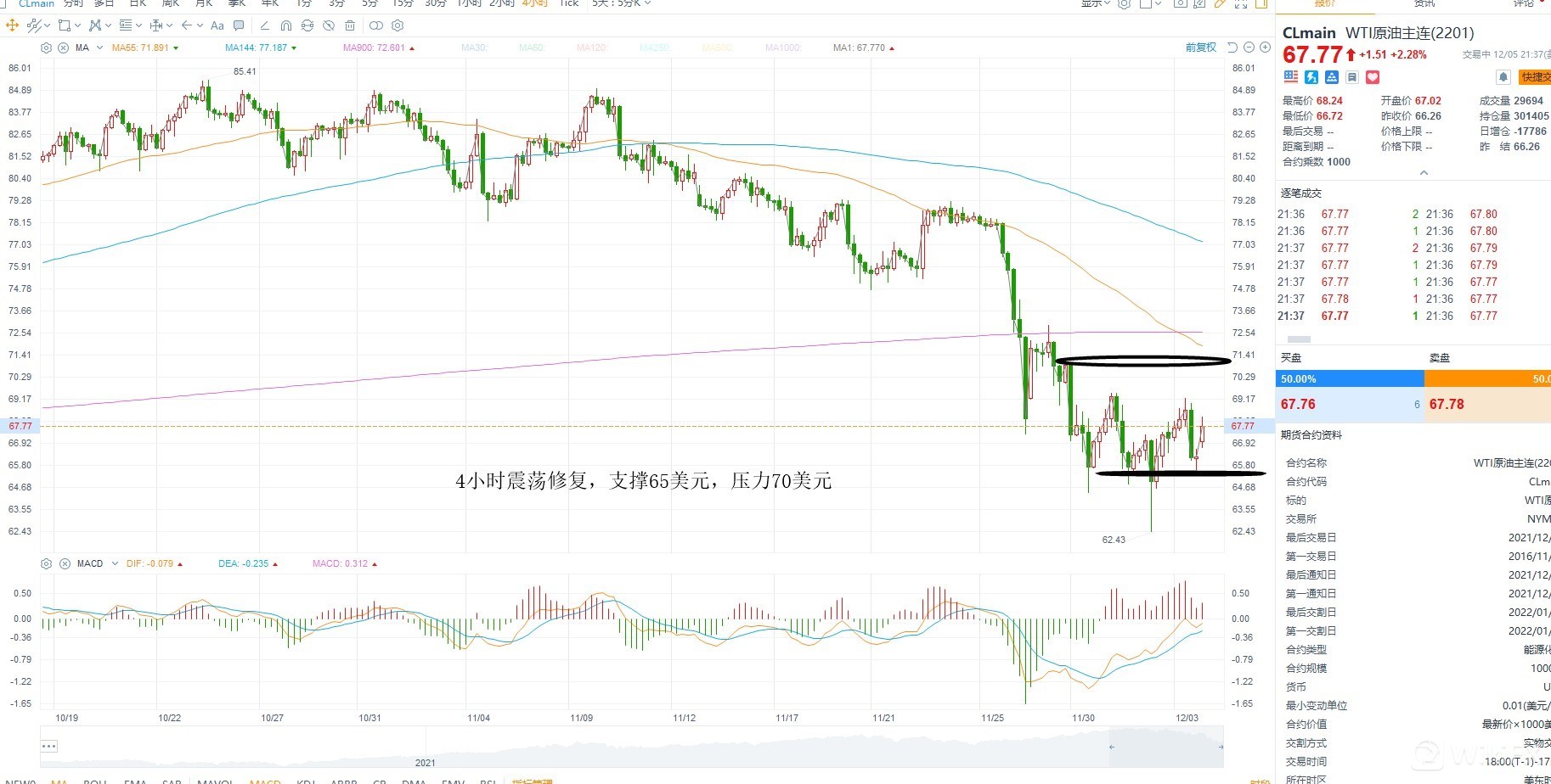 周五美国非农数据不及预期,预测值55万,实际公布值21万,使得美元冲高回落,但从非美货币上来看,美元依旧属于强势,而金价则受到数据提振探底回升,短期情绪偏多为主,但这里只是反弹,因美联储鹰派基调是压制金价走强的重要因素,美原油方面反复震荡,没有明确的方向,OPEC+表示将增产进行必要的调整,从而使得油价出现了反弹,继续关注疫情的影响,以及供给端的增速变化