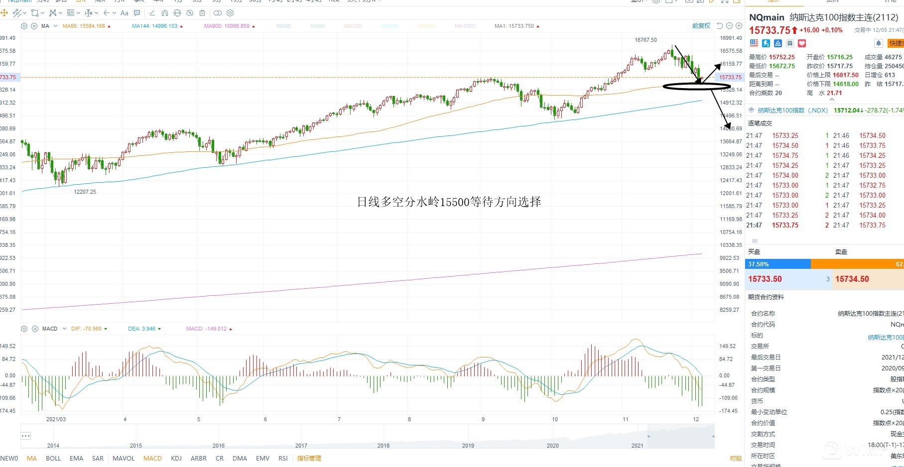 纳斯达克指数维持高位震荡,短期对于疫情的影响之后出现了大幅杀跌,但并未转为空头趋势,只是多头转震荡,等方向选择,基本面上的确风偏下行,不利指数走强,继续关注美债收益率曲线是否走平,推动指数反弹,技术层面上日线级别多空分水岭15500,短期不破则存在反弹需求,跌破则短期见顶,上方反弹压力16200