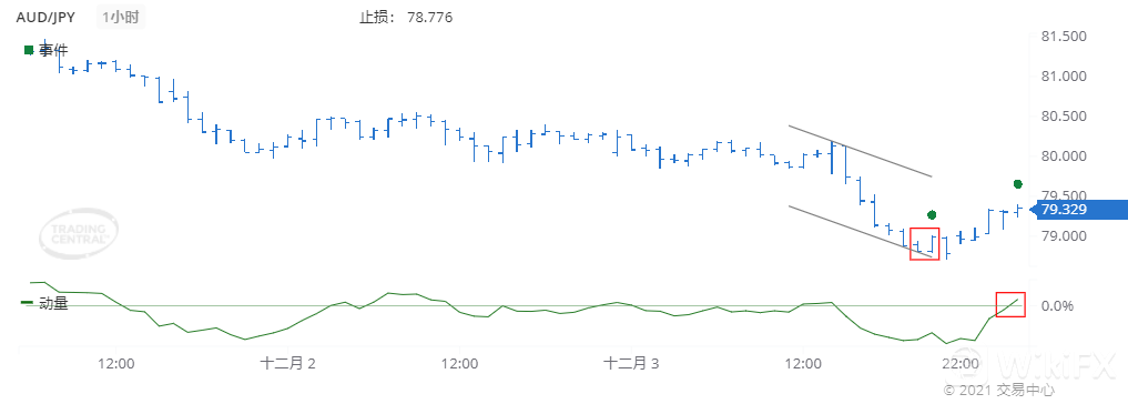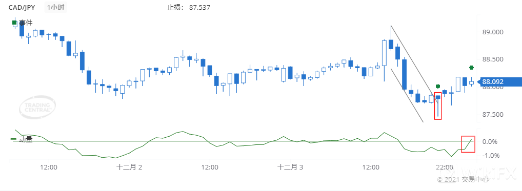 动量摆动指数于2021年 12月 06日(GMT时间02:00)向上穿越0,此信号表明新的加速上涨趋势已经出现。
