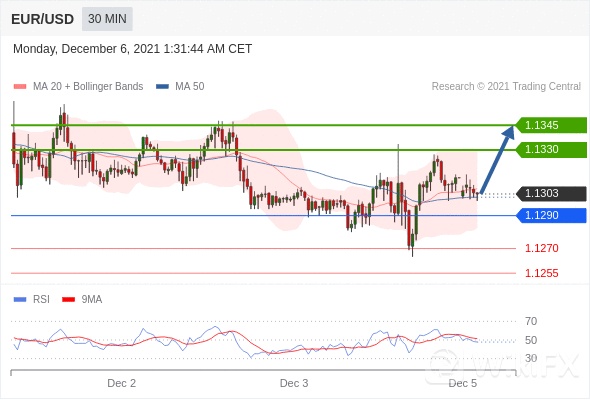 在 1.1290 之上,看涨,目标价位为 1.1330 ,然后为 1.1345 。