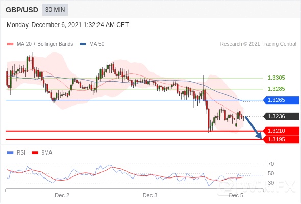 只要1.3265阻力位不被突破,向下跌破1.3210位置的风险很高。