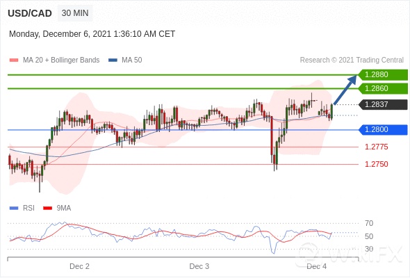 在 1.2800 之上,看涨,目标价位为 1.2860 ,然后为 1.2880 。