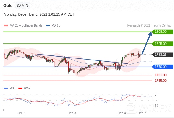 在 1770.00 之上,看涨,目标价位为 1795.00 ,然后为 1808.00 。