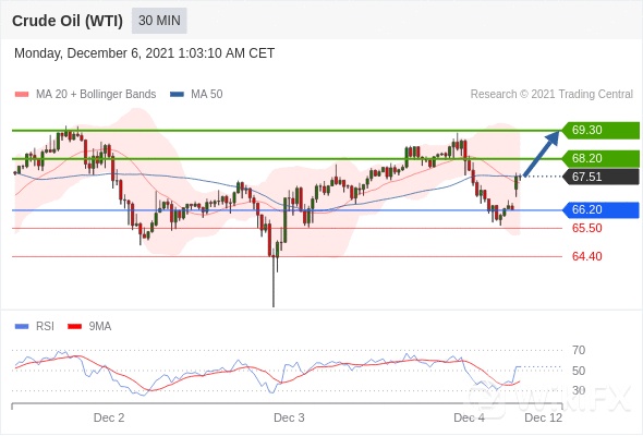 在 66.20 之上,看涨,目标价位为 68.20 ,然后为 69.30 。