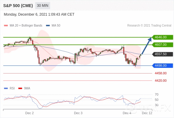 在 4498.00 之上,看涨,目标价位为 4607.00 ,然后为 4646.00 。