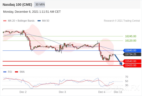 在 15840.00 之下,看跌,目标价位为 15540.00 ,然后为 15420.00 。
