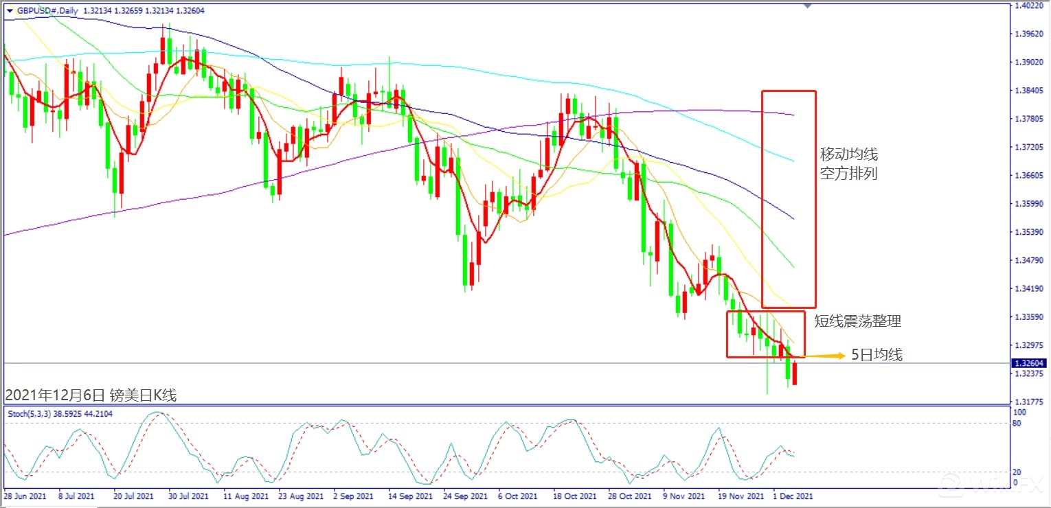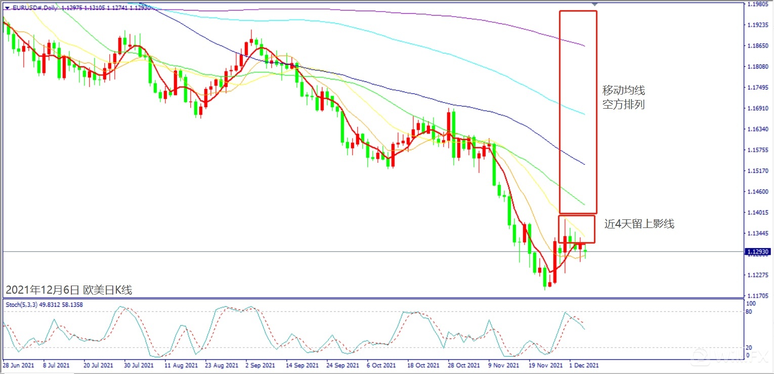 日级别线图,近4天皆留长上影线,移动均线空方排列,可能下探新低。