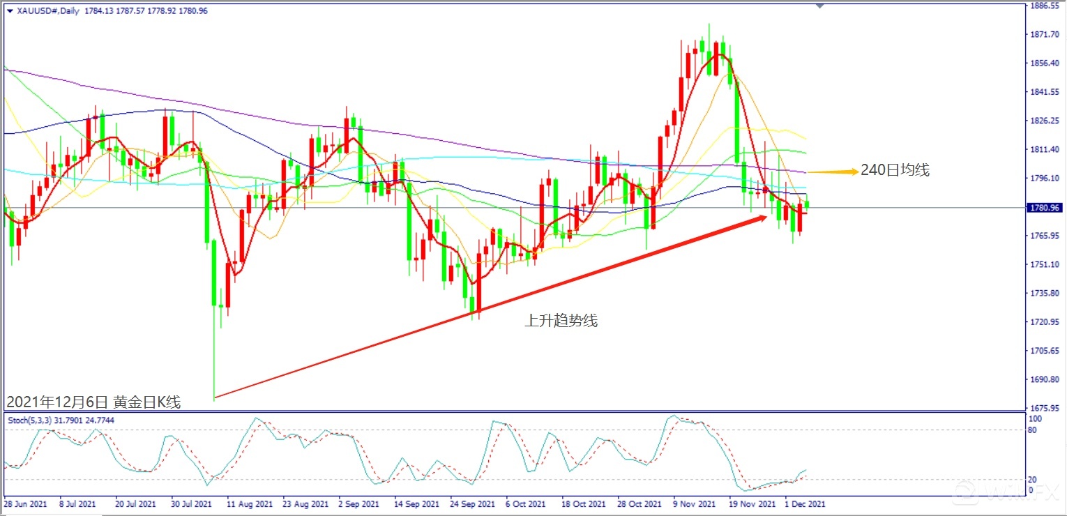 周一(6日)关注欧元区财长讨论若提出维持宽松货币,一旦欧元大跌推升美元上涨,不排除黄金可能回测上周低点1760关口。南非在奥密克戎新冠疫情一周内出现三倍确诊人数,而上周美国三分之一州出现了奥密克戎变异株,一旦疫情持续升温造成美元和美股下跌,黄金有机会再度挑战1800关口。若美国本周顺利通过两大法案,美元指数若创下今年新高,可能再度造成黄金进入空方下跌走势。