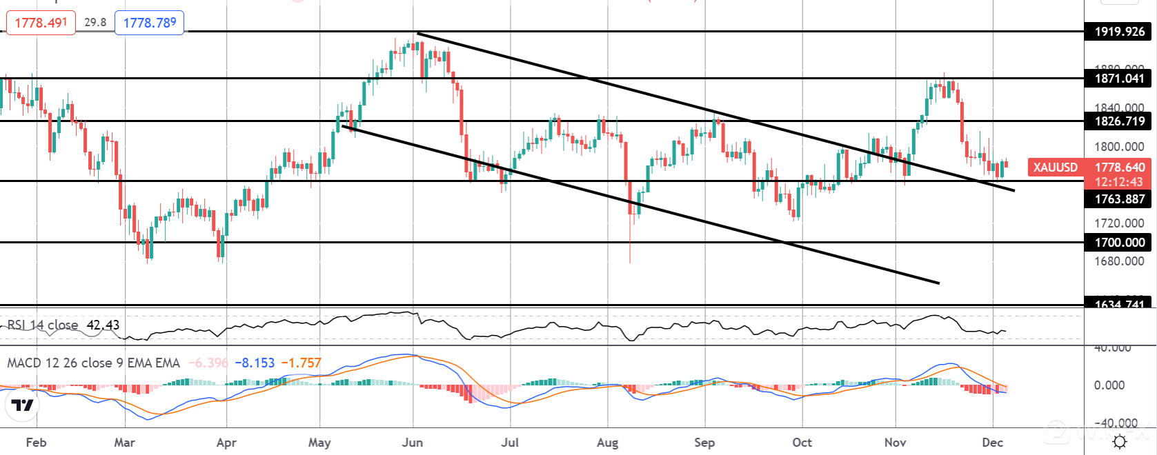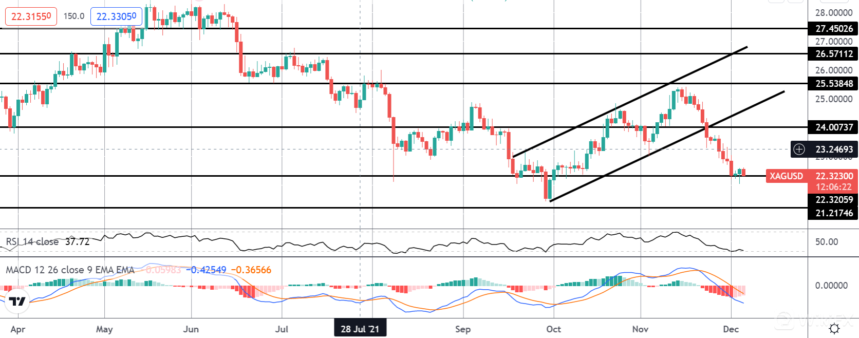 虽然周五的数据显然有一些亮点,但整体基调可能不足以让市场相信美联储将在 12 月进一步缩减规模。鉴于 Omicron 的新威胁和不确定性,预计美联储将在评估新变体的影响时将政策维持在当前水平似乎是合理的。考虑到这一点,如果我们开始看到美元进一步走弱,金价在短期内有上涨的空间。
