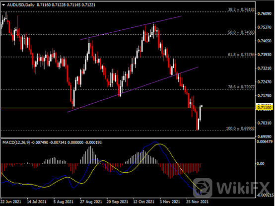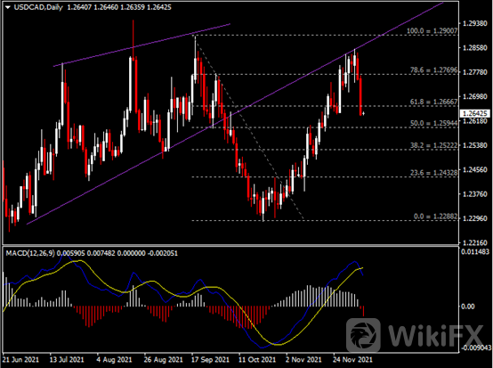 油价走高有利于主要出口国之一的加拿大。近期加元兑主要货币皆录得不同程度的涨幅。其中,美元兑加元自高点强势下挫逾130点至1.26水平,创下今年9月23日以来的单日最大跌幅。依据南非医学数据显示,辉瑞疫苗加强针对于Omicron变种毒株仍有一定的防护作用,且目前为止患者症状较轻,并不需要依赖输氧等医疗干预。此外,英国制药公司葛兰素史克也表示,旗下的药物Sotrovimab对于Omicron病毒感染早期的治疗起到一定的帮助,并将这些病患的住院和死亡风险降低79%。