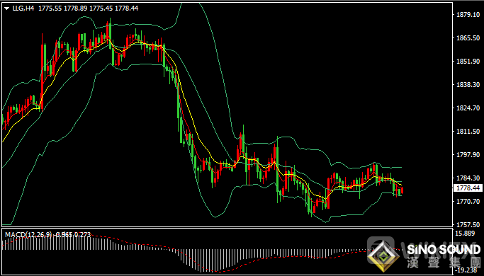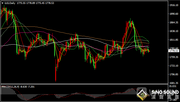 昨晚现货黄金价格维持近期低位盘整,昨晚金价一度冲高至1782.70美元/盎司,但低于日内高点1787.36美元/盎司,金价冲高后再度回撤并刷新日低至1773.26美元/盎司,美盘金价最终报收在1774.96美元/盎司,昨日金价跌幅约0.44%。今日亚市现货黄金开盘在1775.55美元/盎司,金价最低在1775.45美元/盎司,早盘金价振荡回升最高至1779.41美元/盎司,截稿前金价在1778附近振荡运行。
