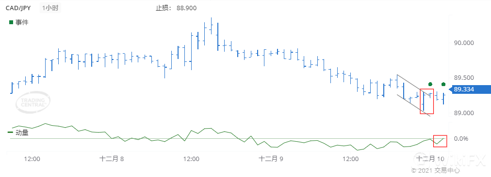 动量摆动指数于2021年 12月 10日(GMT时间02:00)向上穿越0,此信号表明新的加速上涨趋势已经出现。