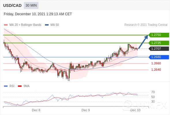 在 1.2680 之上,看涨,目标价位为 1.2725 ,然后为 1.2750 。