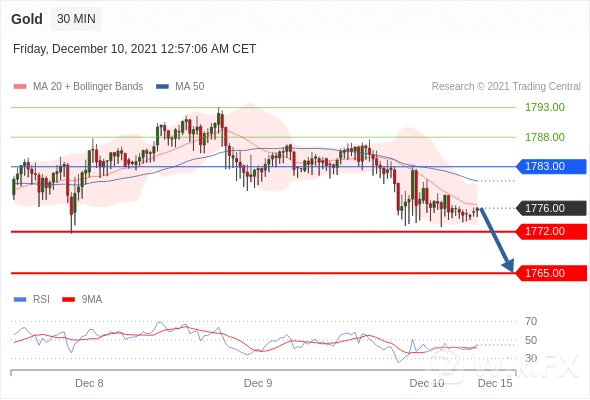在 1783.00 之下,看跌,目标价位为 1772.00 ,然后为 1765.00 。