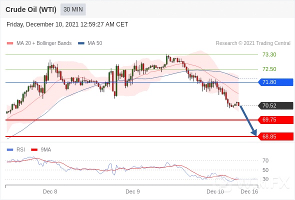 在 71.80 之下,看跌,目标价位为 69.75 ,然后为 68.85 。