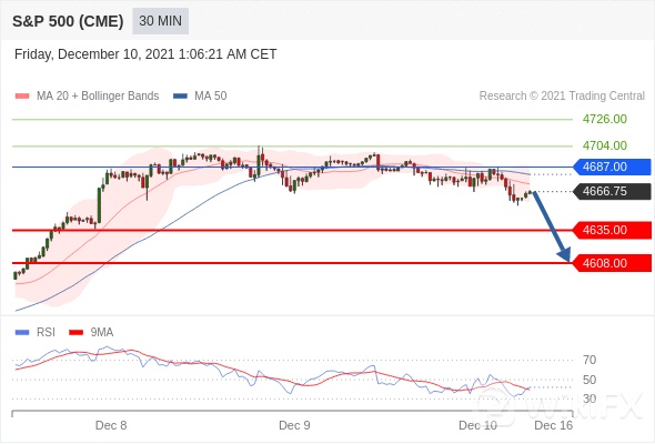在 4687.00 之下,看跌,目标价位为 4635.00 ,然后为 4608.00 。