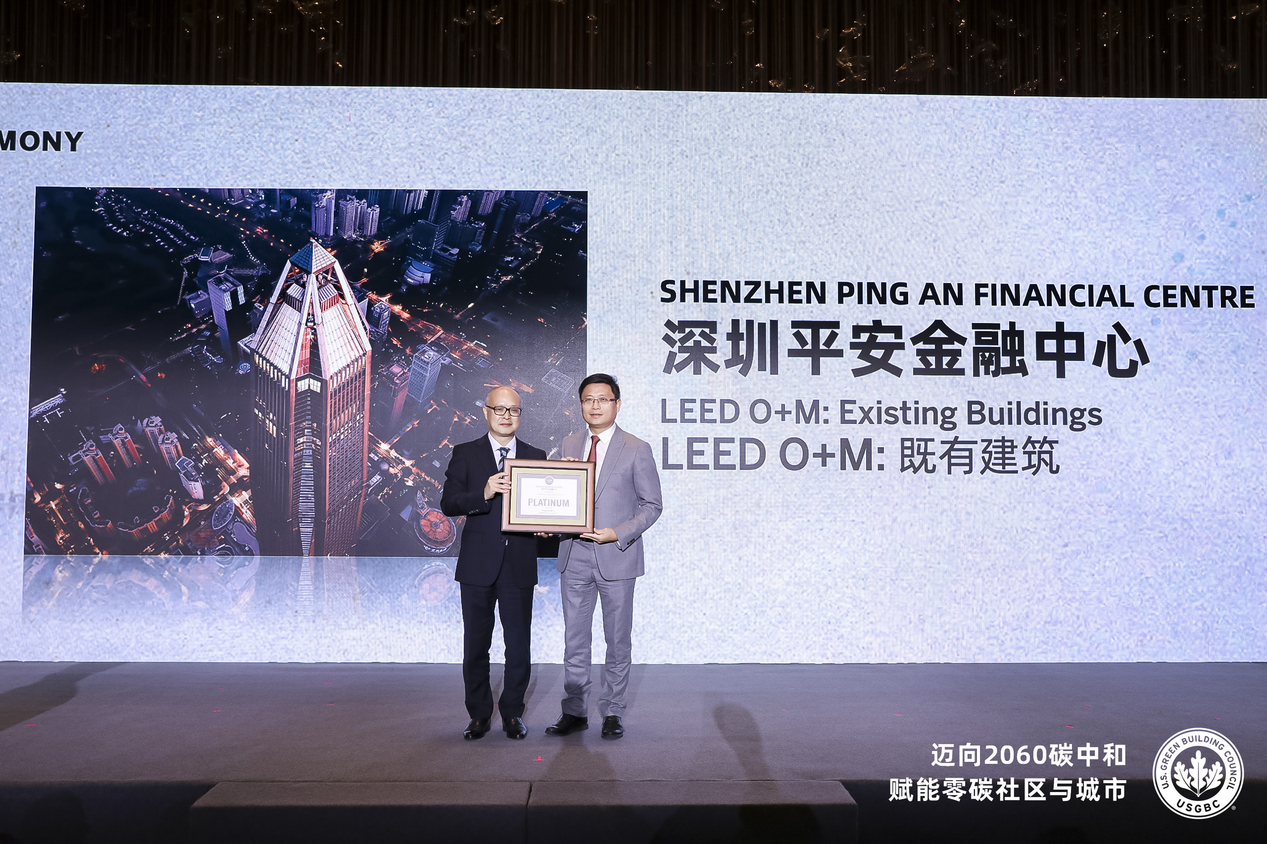 近日,由 USGBC(美国绿色建筑委员会)主办的“迈向 2060 碳中和,赋能零碳社区与城市”高峰论坛暨颁奖仪式在位于深圳平安金融中心南塔的——深圳柏悦酒店圆满举办。平安不动产写字楼资管总监黄玉麟受邀出席,并参与“迈向零碳:从开发商到城市运营商”的圆桌讨论,与在座同行共同探讨了作为城市运营商、肩负社会责任的企业,如何服务于2060 碳中和的大目标。会上,深圳平安金融中心还作为大湾区绿色建筑的杰出代表,正式获得了USGBC颁发的LEED最高级别铂金级认证证书。