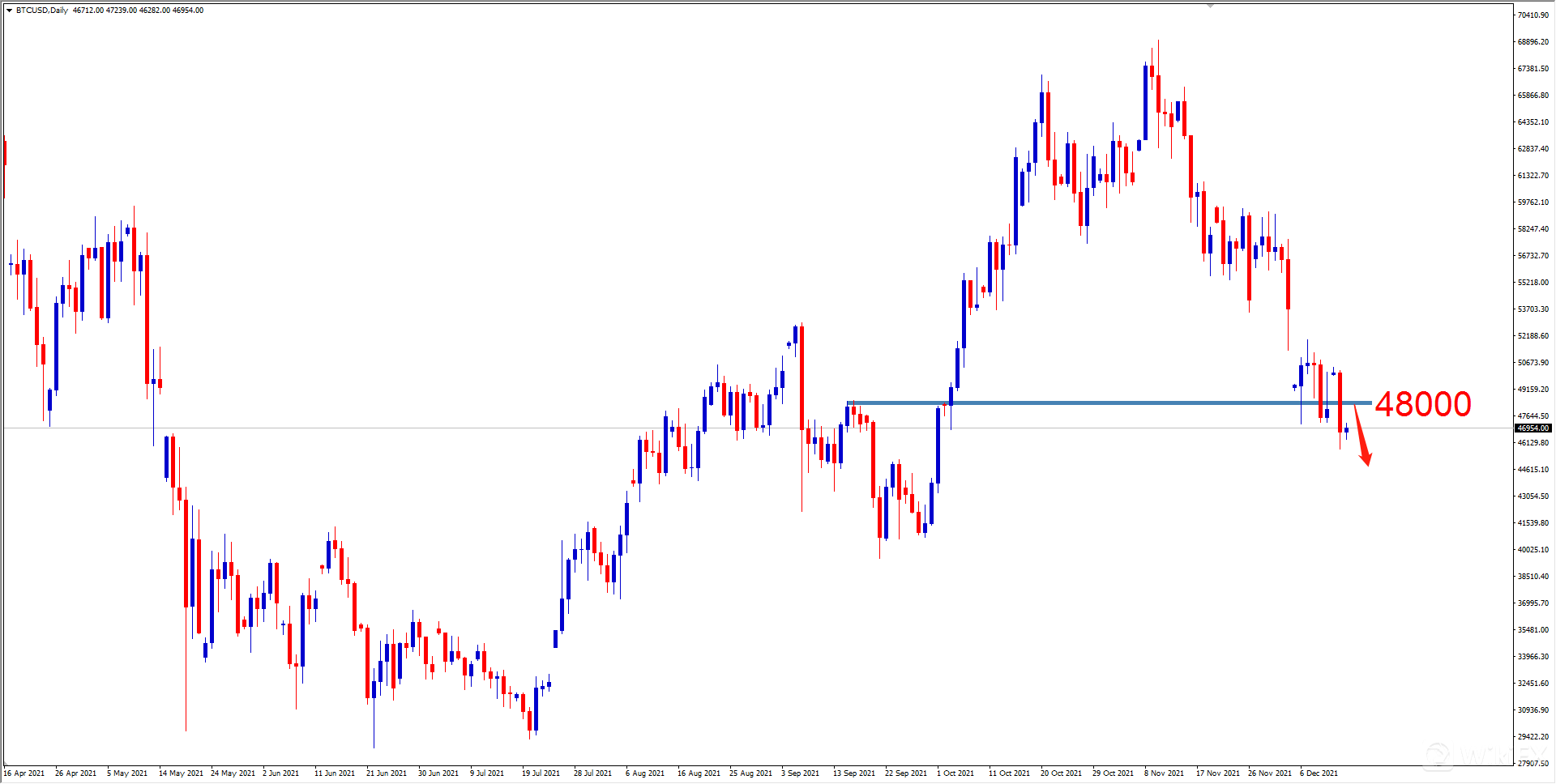 【交易策略】:目前市场格局呈现空头流向,建议投资者可考虑关注48000附近做空,止损50000附近,止盈44000附近。