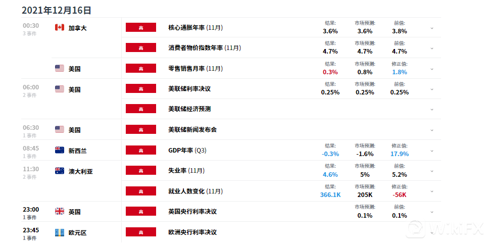美元指数大幅冲高96.870回落,这需要分成2个部分来看;冲高97点位的原因显而易见,在基本确认明年开始加息的情况下,资金将回流美国提高美元的需求促使美元升值;而稍后的回落一部分因为“买预期卖事实”,在缩表加息尘埃落地的情况下,盈利的机构将平仓重新计价未来的预期,另一部分则是因为市场对于加息的效果仍保持怀疑,尤其是目前情况下的加息是否能真正的遏制通胀的上升,同时这也促使在美联储会议尘埃落地后,纳斯达克、道琼斯与标普500均不同程度收涨,在会议前由于不确定性下跌部分被全部收回。