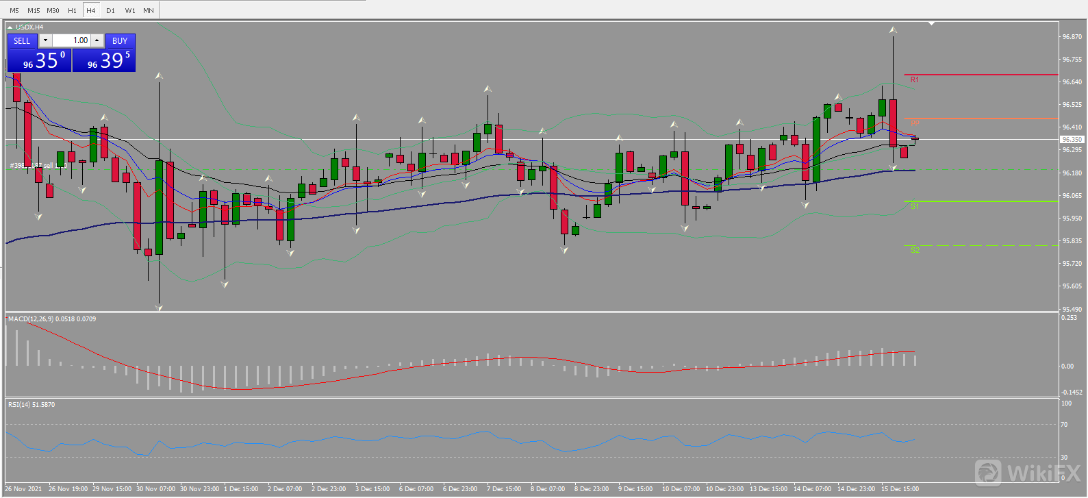 4小时图RSI 51,布林带收窄,预计价格还需要进一步回调后96附近后才能进一步突破97关键点位,阻力位96.676,支撑位96.031
